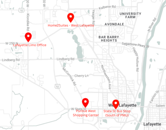 Lafayette Limo provides a convenient shuttle between Chicago’s O’Hare Airport and multiple locations in West Lafayette and on Purdue University’s West Lafayette campus. Designed to help Greater Lafayette locals, Boilermakers, and visitors get where they need to go, we offer an early morning departure to ensure timely arrivals for your flights.